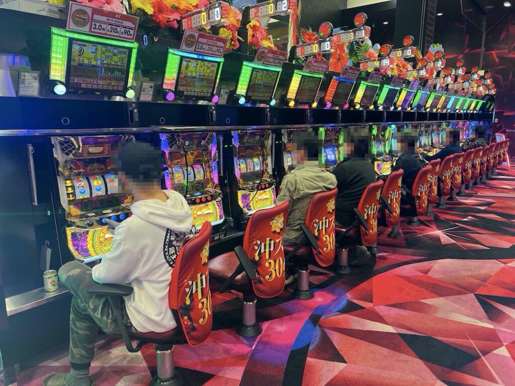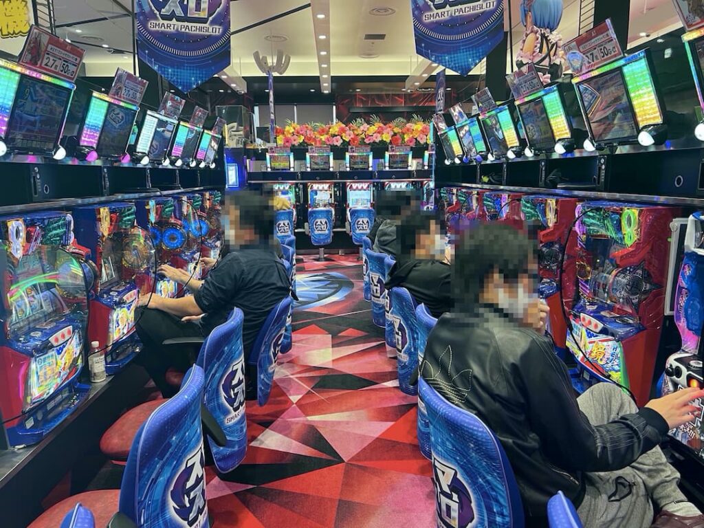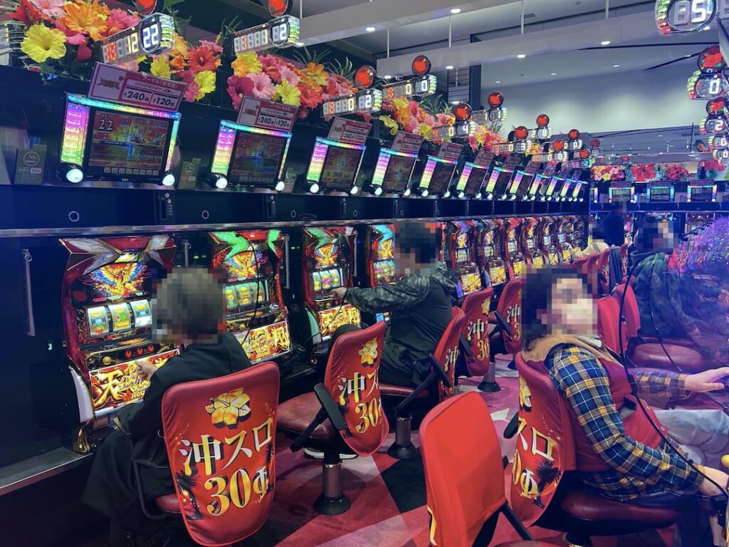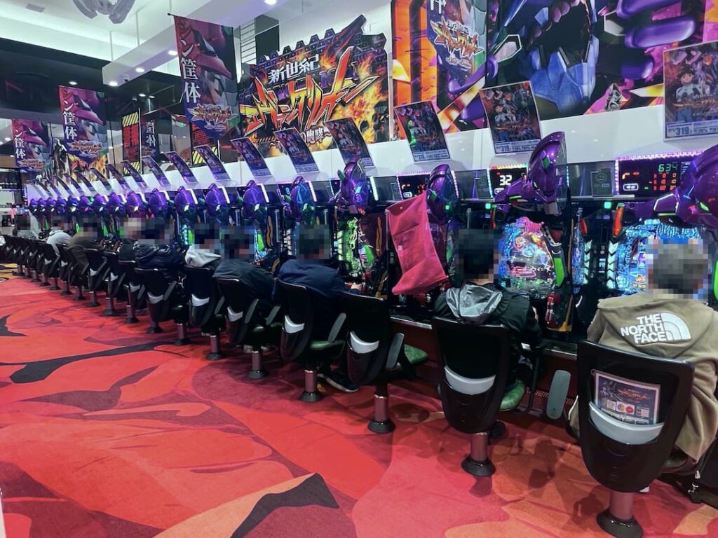 さらに当日はハナジャグだけでなく6.5号機&スマスロにも多くのプレイヤーが遊技しており、パチンコでも同店メインコーナーを彩るエヴァ未来への咆哮&ゴジエヴァがほぼ満台という稼働状況になっていた。