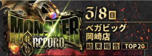 3/8 ベガビック岡崎店 Sモンスターレコード 差枚数ランキング