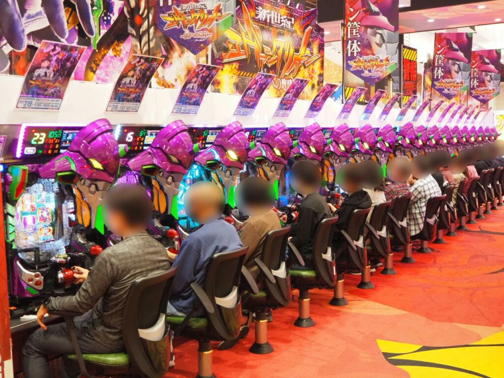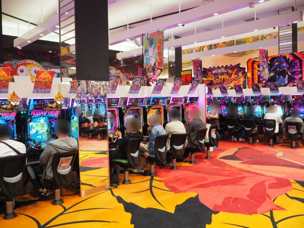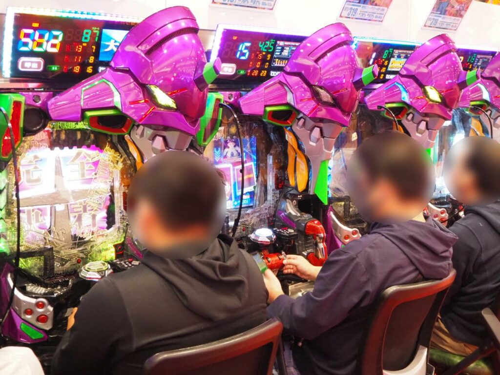 どこから見ようか迷うほど賑やかな4円パチンコエリアの中でも特に注目を集めていたのは、新世紀エヴァンゲリオン~未来への咆哮~やPフィーバー機動戦士ガンダムユニコーンなどがしっかりと見渡せるセンター通路で、エヴァ・ユニコーン共にぎっしり満台。