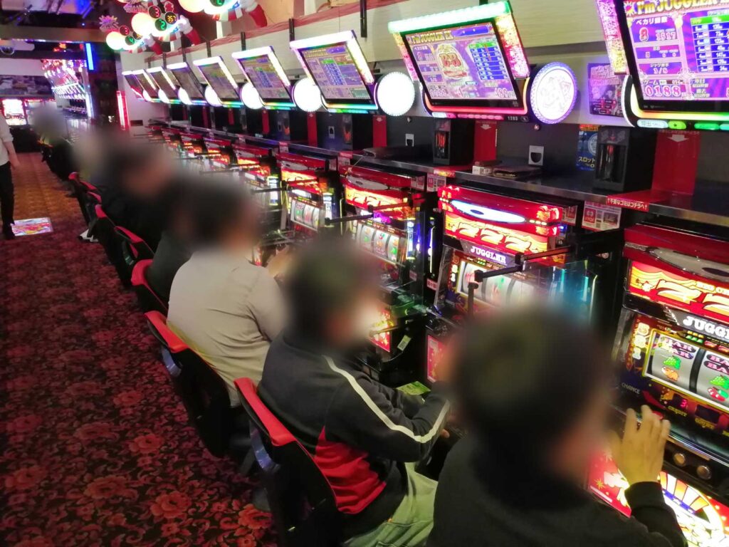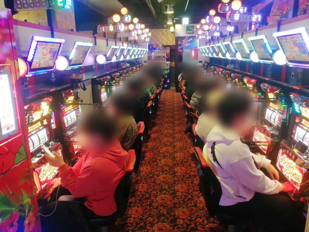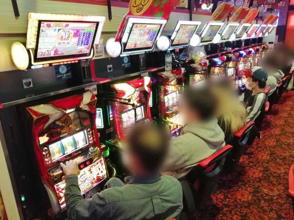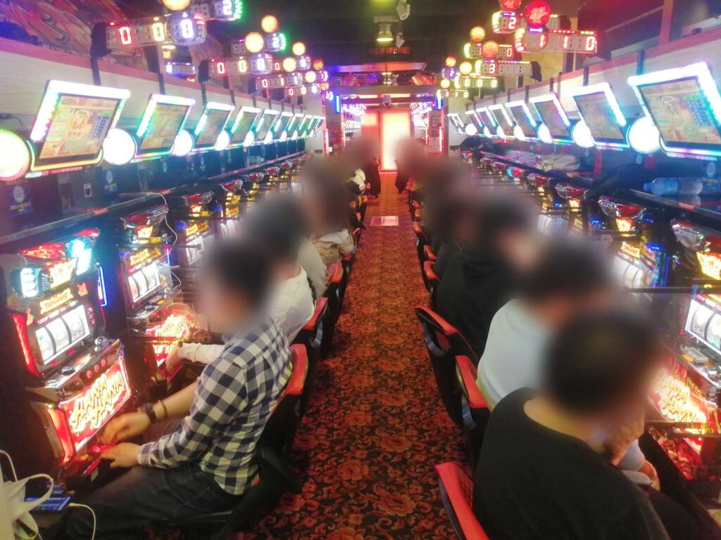 今回の取材では吉本興業所属お笑い芸人のもり田さんが来店し、平日ということを忘れてしまうほど大盛況だった。安定の人気ぶりで開店直後に満台となるハナハナシリーズ。