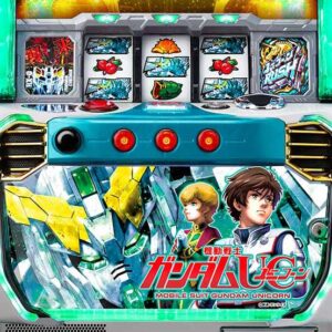 新旧様々な機種にスポットが当る同取材だが、今回は今月に導入されたばかりの最新台パチスロ炎炎ノ消防隊と、こちらもまだ記憶に新しいパチスロ機動戦士ガンダムユニコーンの2機種で、全台系と思われる好調台の固まりが確認できた。