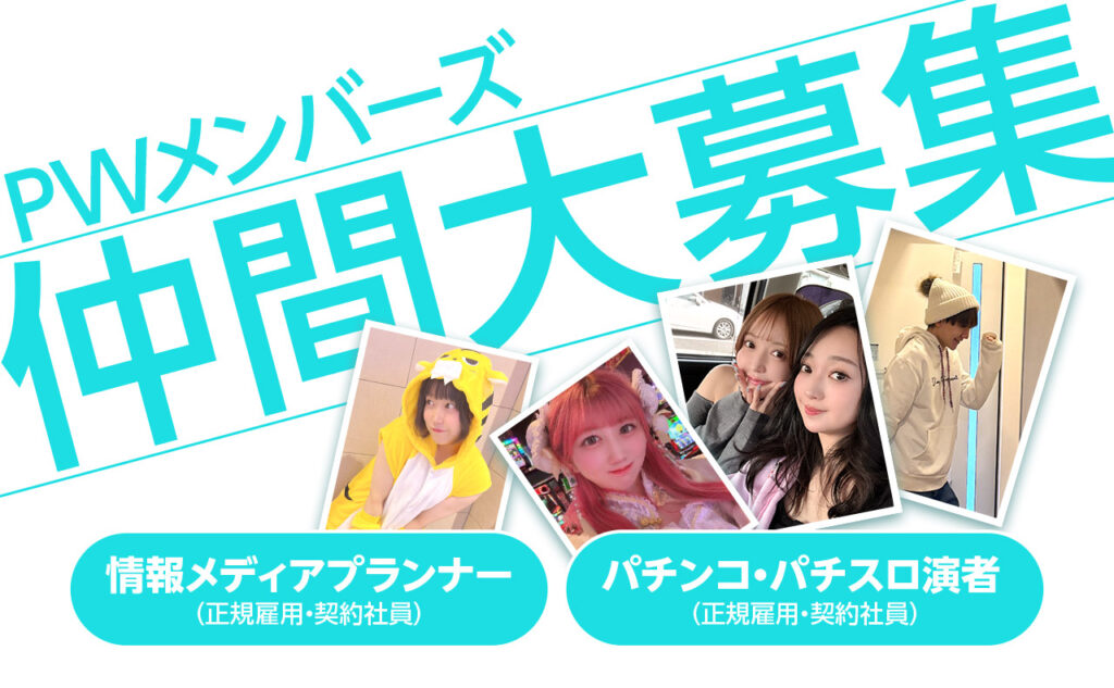| こんな人を求めています! | ・とにかくパチンコ・パチスロが好きな方 ・パチンコ・パチスロ知識に自信がある方 ・アームに自信がある方 ・社会のルール(時間厳守、挨拶、笑顔、社会常識など)を理解している方 ・SNSの活動に抵抗がない方 ・ファンとパチンコの楽しさを共有したい方 ・パチンコ業界をとにかく盛り上げたい方 |